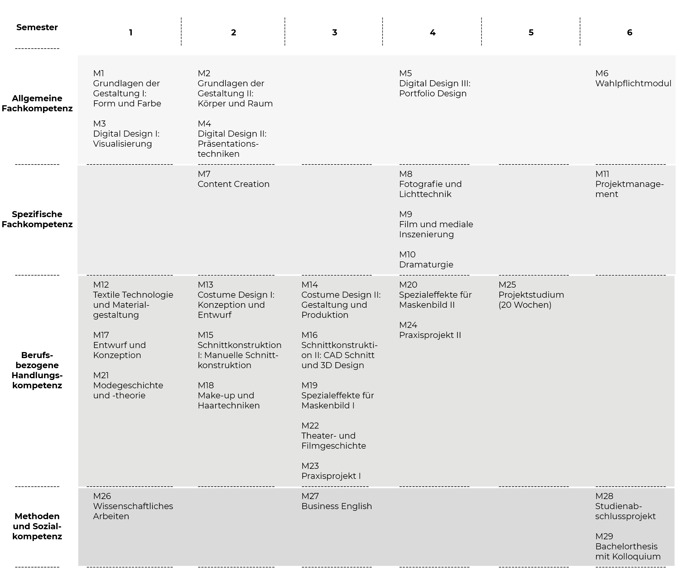 Der Bachelorstudiengang Costume and Make-up Design entwickelt ein Verständnis über die Beziehung zwischen Raum, Mensch/Körper und Objekt, zwischen Gesellschaft, Geschichte, Kultur und Mode. Er sensibilisiert die Beobachtungsgabe in Bezug zur eigenen Umgebung, fördert die Entwicklung und Ausdrucksfähigkeit einer individuellen Haltung dazu und lehrt die Übersetzung in die künstlerische Praxis und die Wirkung und den Einsatz gestalterischer Mittel.