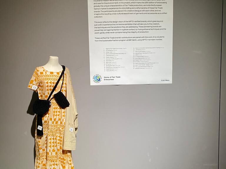 Für dieses bevorstehende Treffen entwickelte studio MM04 das Konzept für eine Ausstellung. In diesem Rahmen wurde eine Zusammenarbeit mit 2 langjährigen Mitgliedern der WFTO, Selyn Textiles und Cocccon - Craft & Loom, und den Studierenden der BSP im Studiengang Sustainable Fashion initiiert. Es entstand eine Multi-Brand-Auststellung, des Weiteren ein Image-Film und eine Fotokampagne. Die Arbeiten der Studierenden konnten so einem internationalen Fachpublikum der Fair-Trade-Community in einem inspirierenden Umfeld gezeigt werden.